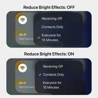 减弱明亮效果开关关闭时(默认状态就是这个):液态玻璃的高亮边缘和菜单背景渐变明显。