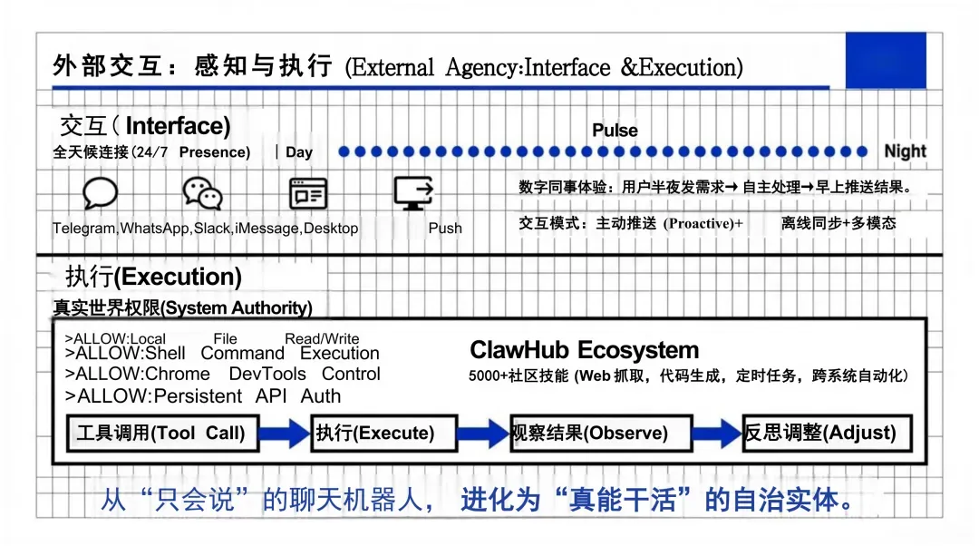 交互(Interface):支持多模态主动推送与离线同步,实现 24/7 全天候连接;