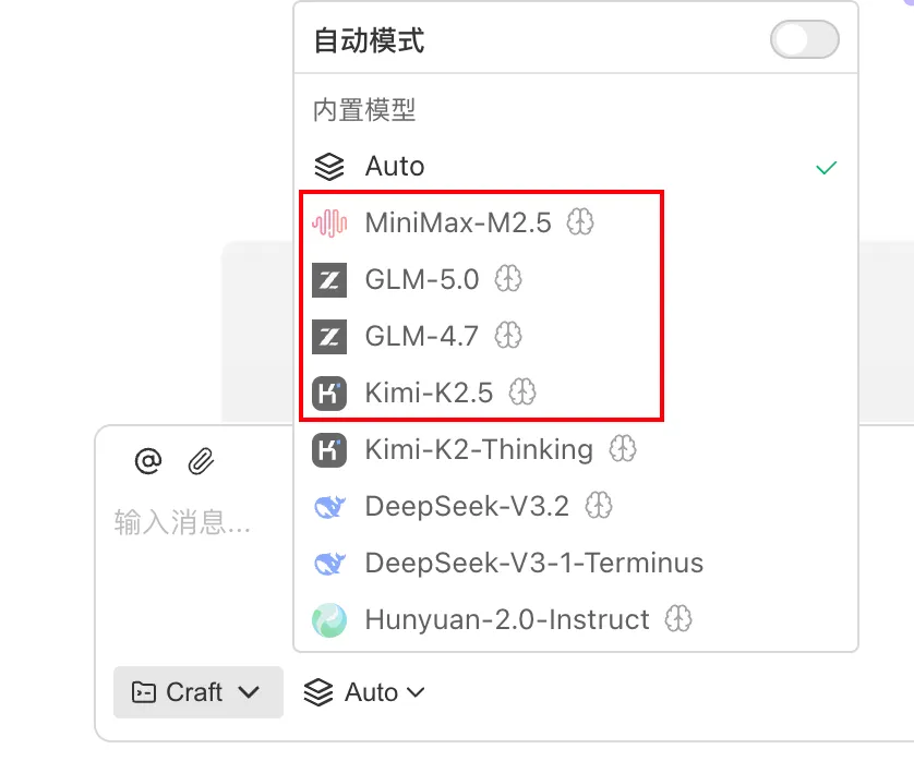 如果不知道怎么选,可以直接用Auto(自动)模式,它能根据你下达的任务难度,自动帮你智能选择最合适的模型去处理。