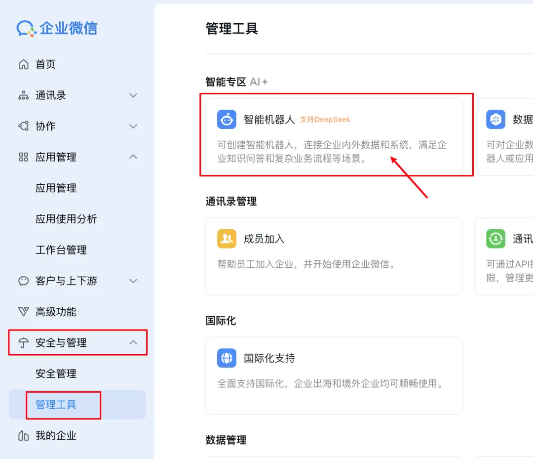 进入安全与管理->管理工具->智能机器人