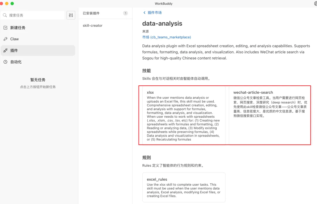 在扒拉WorkBuddy内置的Skills时,我发现了一个叫data-analysis的宝藏插件。