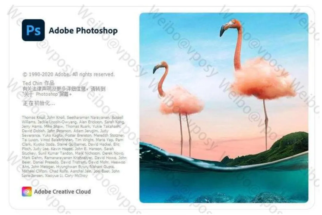 Adobe提供软件,不是用安装包,而是要先问你要邮箱,然后给你的邮箱发邀请函,点击其中链接并注册,通过一些列的操作(我记得还有验证码),你才可以下载Creative Cloud,每个邀请和正版软件一样,可以在两台设备上使用。上述说的百度云+安装包……大哥想象力太丰富了,你吹牛逼之前能稍微研究一下么……而且Photoshop从2020开始已经没有“CC”这个后缀了,咱们动动脑子再出来骗人好吗。网上还搜到了很多启动界面,比如下面这个……emmmmm……