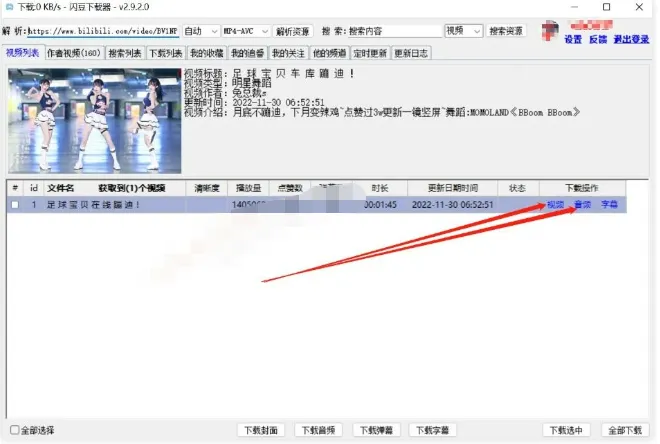 把视频链接粘贴进来后,按下回车即可解析。在右侧可以选择你需要下载的具体内容,如视频、音频、字幕等等