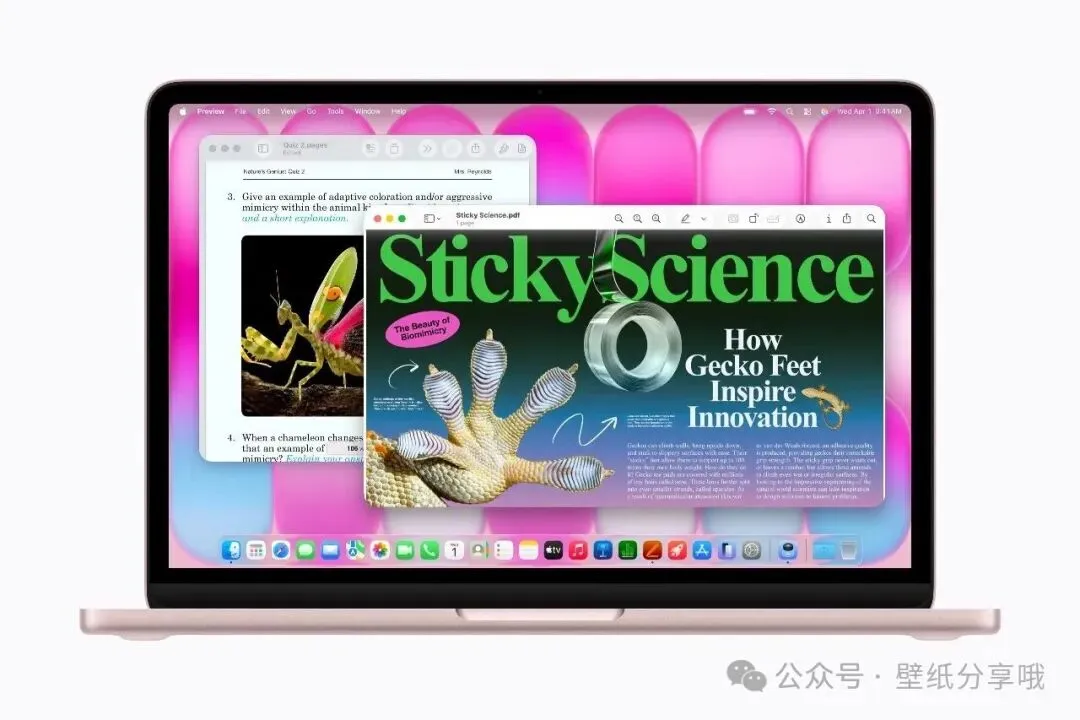 屏幕是一块13英寸的Liquid Retina显示屏,分辨率2408 x 1506,亮度500尼特,支持10亿色显示。虽然没上P3广色域,也没有ProMotion高刷,但这个价位段能给到这种素质的屏幕,同档位里确实算能打的。反光涂层也在,图书馆靠窗坐或者室外用,眼睛不至于太难受。