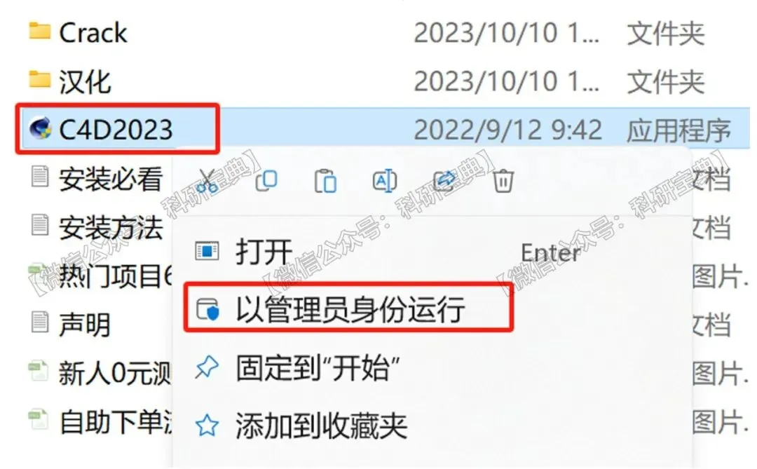 2.右键“C4D2023”,选择“以管理员身份运行”