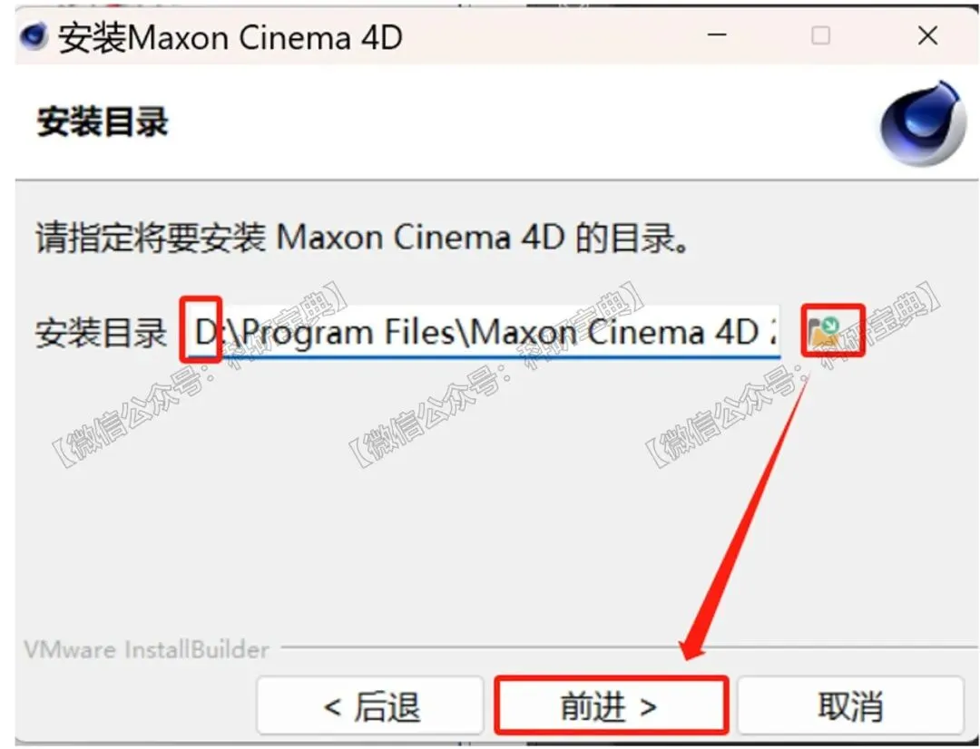 4.选择安装路径:可以直接把 C 改成 D,或者点文件夹,自己选择安装位置,最后点击“前进”