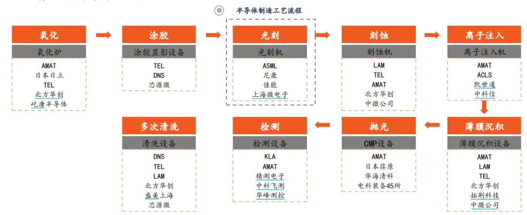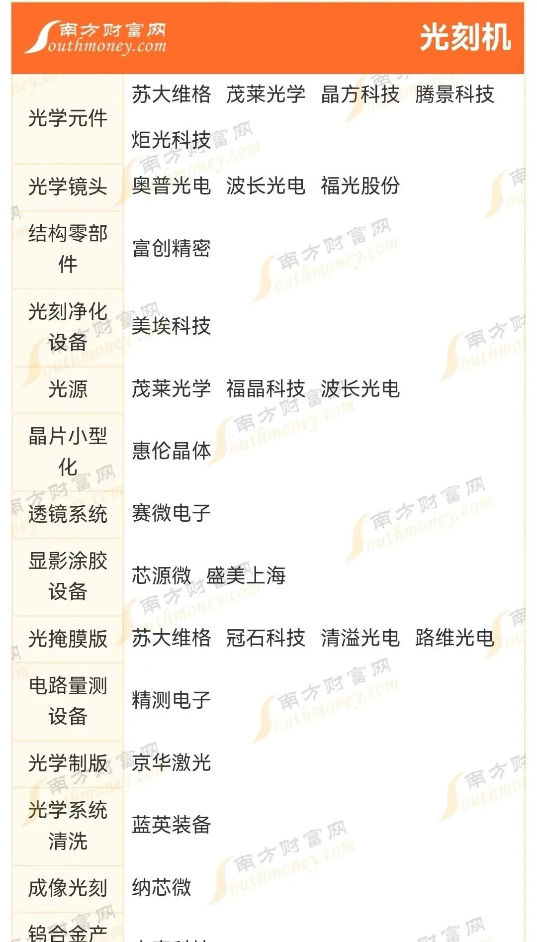 光刻机产业链图详解(附下载)导语目前市场主流光刻设备有i-line、KrF、ArF、ArFi、EUV五大类今日免费下载:2023光刻机行业报告来源:平安证券、南方财富网光刻机是半导体制造的核心设备,其性能直接决定了芯片的工艺水平,开发难度大,价值量高,市场规模可观,目前市场主流光刻设备有i-line、KrF、ArF、ArFi、EUV五大类;分辨率、套刻精度、产率是光刻机的核心指标,其中,分辨率直接决定制程,极致的分辨率水平是光刻机产业不懈的追求,是光刻机最重要的指标,而套刻精度影响良率,产率影响光刻机的产能及经济性,此外,多重曝光技术可在光刻机分辨率不变的情况下进一步提高芯片制程,应用较为广泛。ASML、Nikon、Canon是全球光刻机产业三大龙头,占据绝大部分市场份额,其中ASML 在高端浸没式DUV及EUV方面绝对领先,Nikon在浸没式DUV方面也有少量出货,Canon则聚焦中低端领域。国内来看,上海微电子是领航者, 在“02专项”支持以及产业链公司的共同努力下,国产光刻机产业链不断完善:科益虹源已实现准分子激光光源的出货,炬光科技的光刻机用匀化器取得规模可观的营收,茂莱光学已掌握“光刻机曝光物镜超精密光学元件加工”核心技术且其精密光学器件已应用于国产光刻机中,华卓精科则在双工作台方面取得突破。在当前受海外限制的背景下,光刻机是被限制的重点,国产发展是唯一选择,亟待突破。点击查看更多免费干货1、电商财务做账流程全解析2、一文读懂投资界CVC3、IPO上市必备:发行条件、改制流程及方案重点4、氢能产业全景分析(附产业图谱)5、氢能源产业链及细分龙头公司梳理6、新能源产业链全景图(30张PPT)7、中国50大产业链全景图最新高清完整版!8、储能产业链大全(建议收藏)9、股权回购的模式及法律效力分析10、中国医疗器械核心细分行业投资分析11、充电桩行业深度分析与预测(含投资机会)12、人工智能产业链深度解读13、医疗美容产业链图谱与投资布局特征14、我国氢能产业链现状与发展趋势15、国产C919大飞机产业链解析……点击小程序获取👉:更多学习资料......点击这里,800000+份报告免费下载