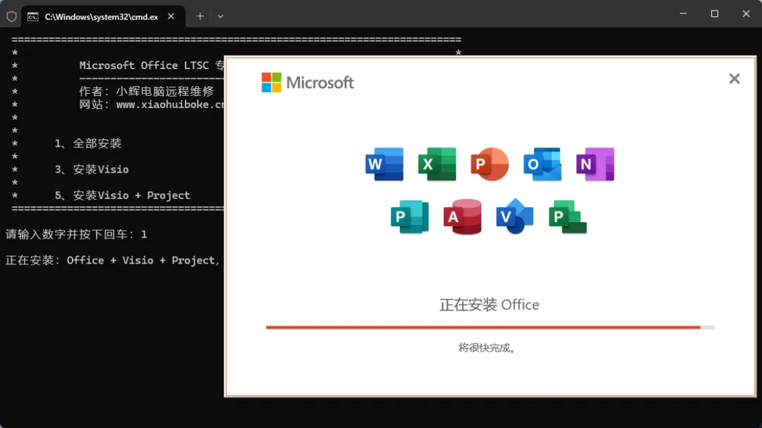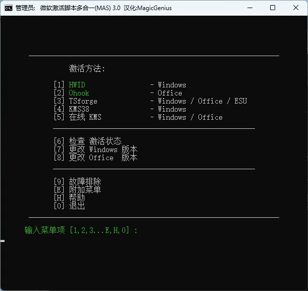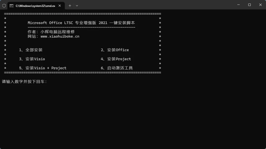 3、安装完后输入“6”然后按下回车。在打开的窗口中根据提示按下对应的数字就可以激活Office了。