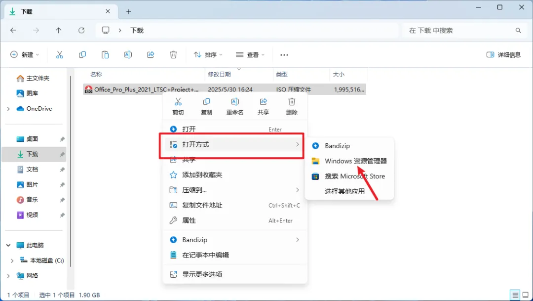 1、将下载好的ISO文件右键选择“打开方式”点击“Windows 资源管理器”,把ISO文件挂载起来。