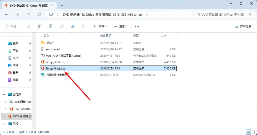 2、打开挂载好的虚拟光驱里面的“Setup_64位”安装程序,如果你的电脑是32位就运行“Setup_32位”安装程序(Windows7系统是打开解压出来的文件夹后面步骤一致),等待安装完成。
