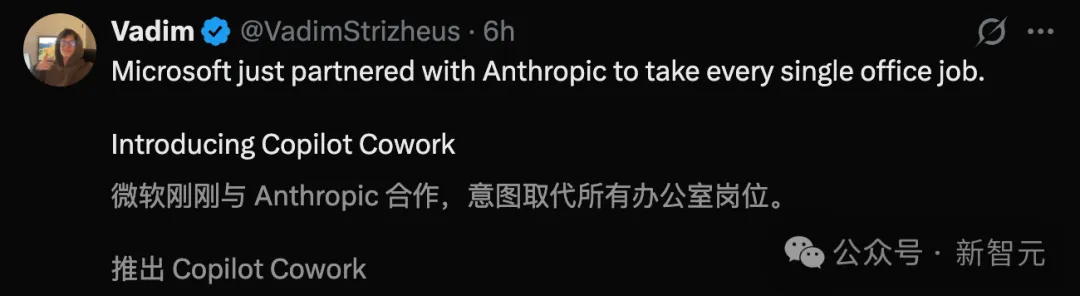 微软直接引入了Claude Cowork背后的技术和同名品牌,把Anthropic的Claude模型整合进了自己的Copilot体系。