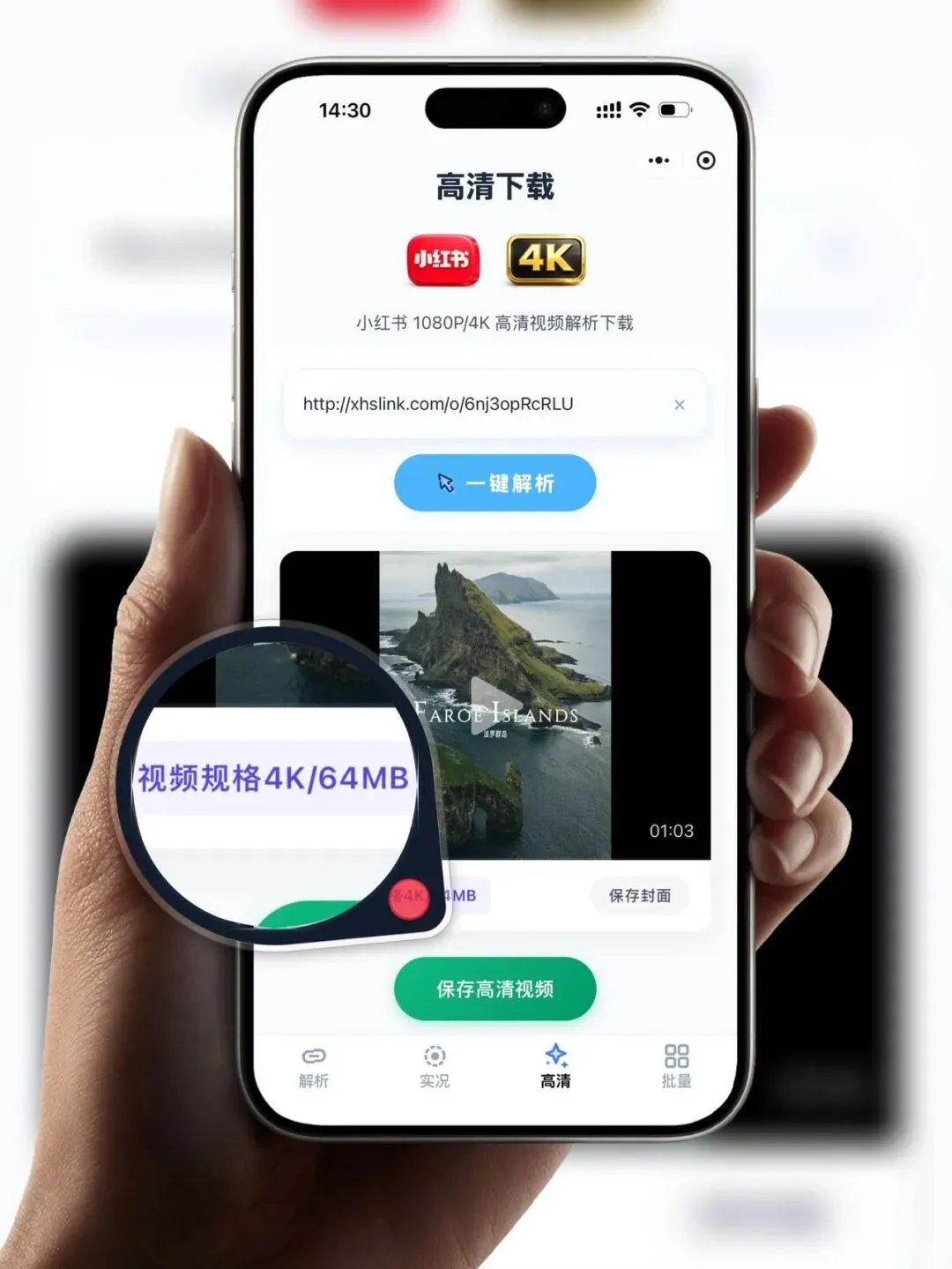 千呼万唤始出来,小红书官方限制高清下载之后,前阵子我先后在 Mac 客户端和小红书下载器等快捷指令里面支持了 1080P/4K 的小红书高清视频下载。现在微信小程序版也来了: