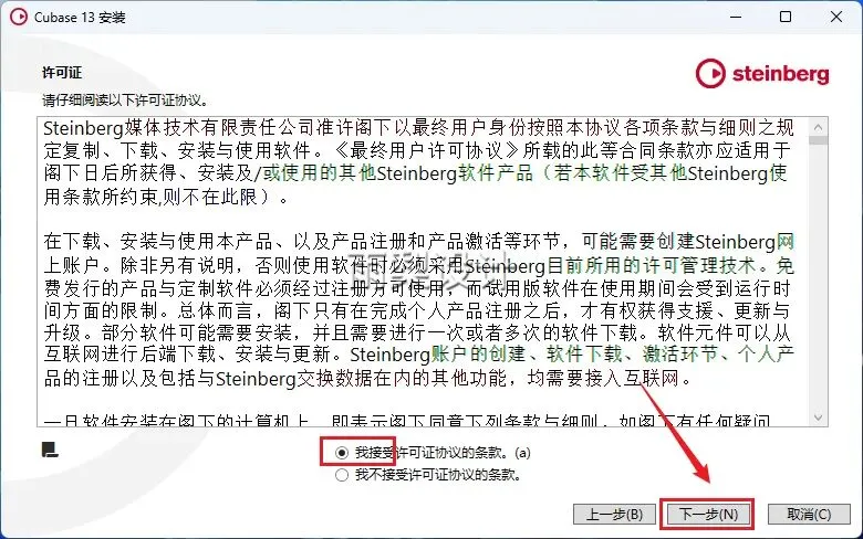 12.选择【我接受】,点击【下一步】