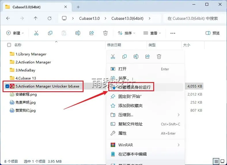 33.右键【Activation Manager Unlocker b6】选择【以管理员身份运行】