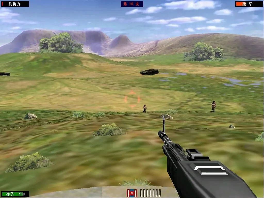 虽说现在看这游戏画面,确实有点粗糙,背景就是简单贴图,建模也不精致,但在当年,这画面加这音效,氛围感直接拉满。炮火炸开的火光、敌人倒地的样子、满屏的硝烟,配上激昂的战场音效,代入感特别强,简单的画面里,全是最纯粹的打仗快感。