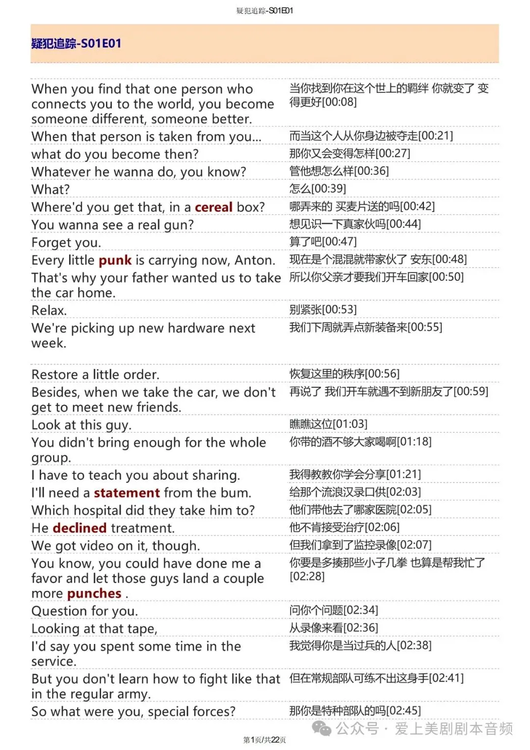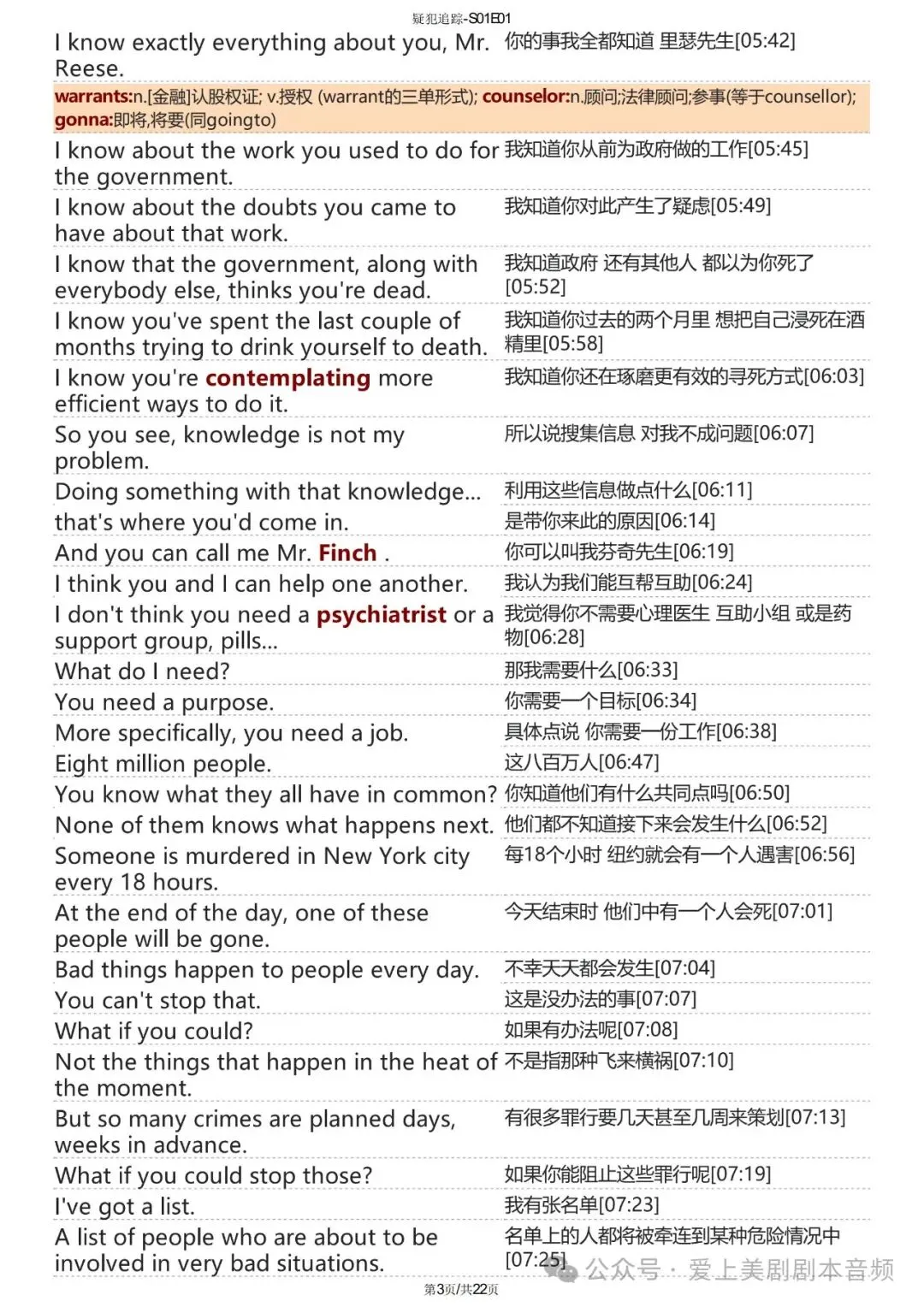 疑犯追踪台词剧本下载pdf(双语精排版)全5季+mp3+单词注释