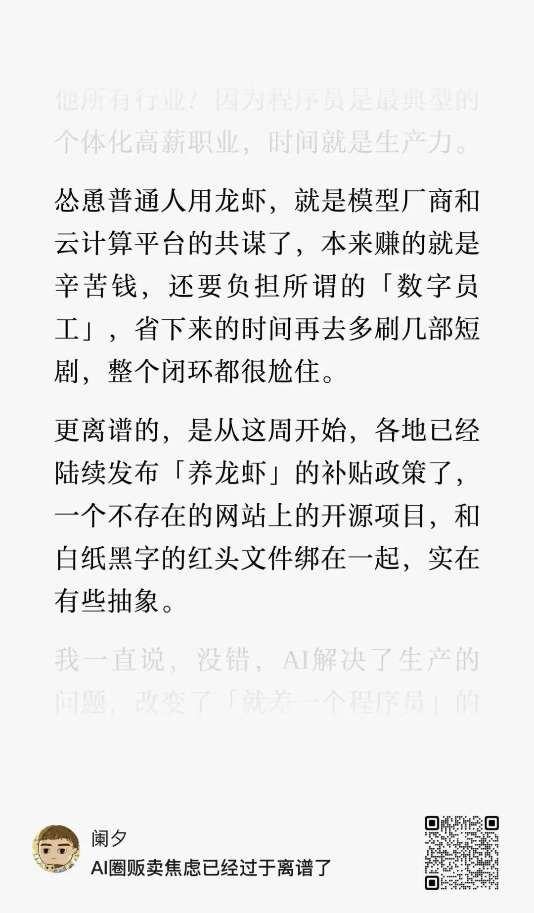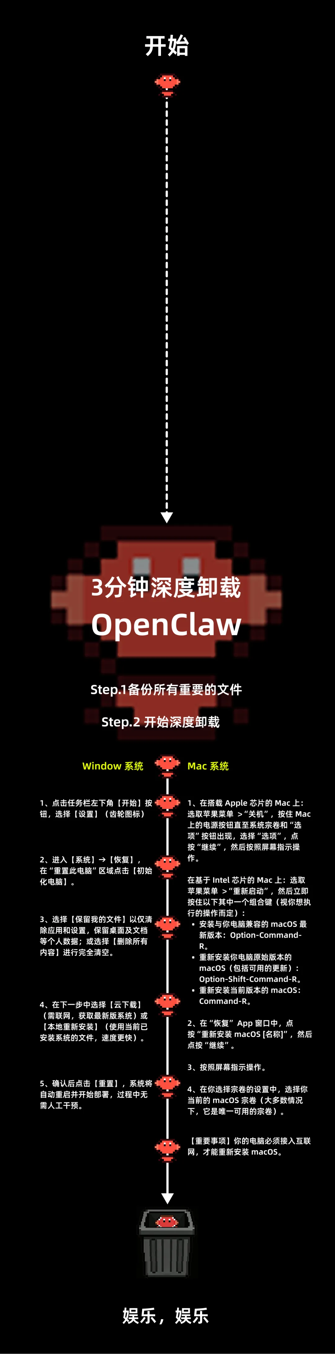3分钟深度卸载OpenClaw!删不干净的残留,一次清到出厂状态最近OpenClaw的确是太火了,其实1月份它一上线就开始在玩了,期间换了几次名字,我也勇敢的装到了自己的办公电脑里(不怕死)。配置阶段大概用了半个小时的时间,当时教程没有很多,虽然也简单,但是好久没有用终端来配置,略微生疏了。看到了一篇文章写的不错(阑夕老师牛逼),里面有一句话:抽象,只能说的确是有点抽象,但是还是相信它真的能够创造价值吧...最后上一个好玩的图我是温维斯,AI超级个体,AIGC超级创作者在AIGC领域不断研究和进步的科技自媒体,希望大家喜欢的的文章分享,如果觉得不错,可以分享给身边的人,下次再见!© THE END 作者:温维斯转载请联系本公众号获得授权商务合作:Wenviss全平台账号:温维斯Wenvis