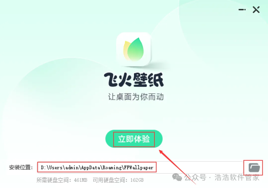 5、软件默认安装在C盘,可自定义更改软件安装位置,这里小编选择安装在D盘;点击【立即体验】