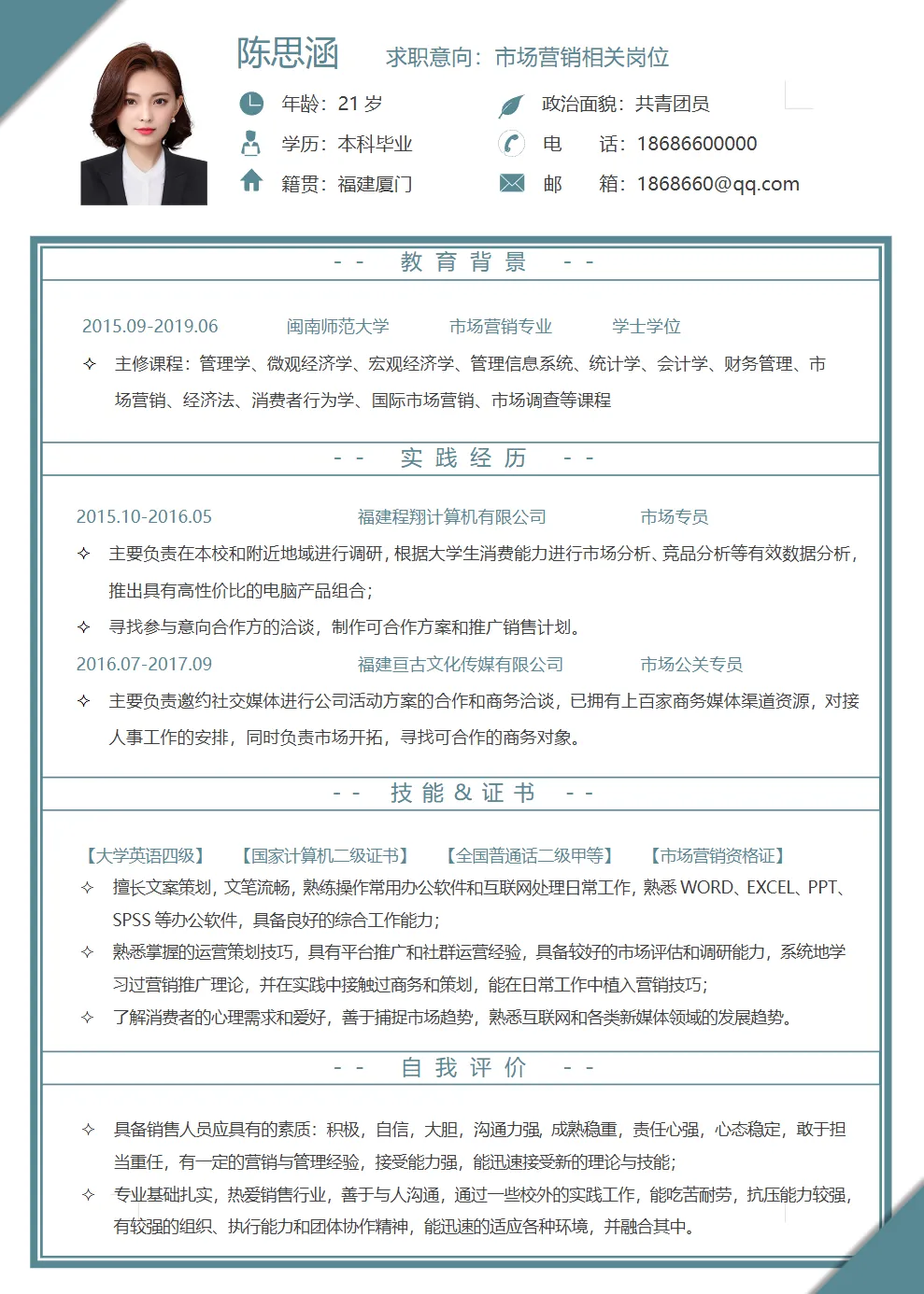 部分简历模板展示