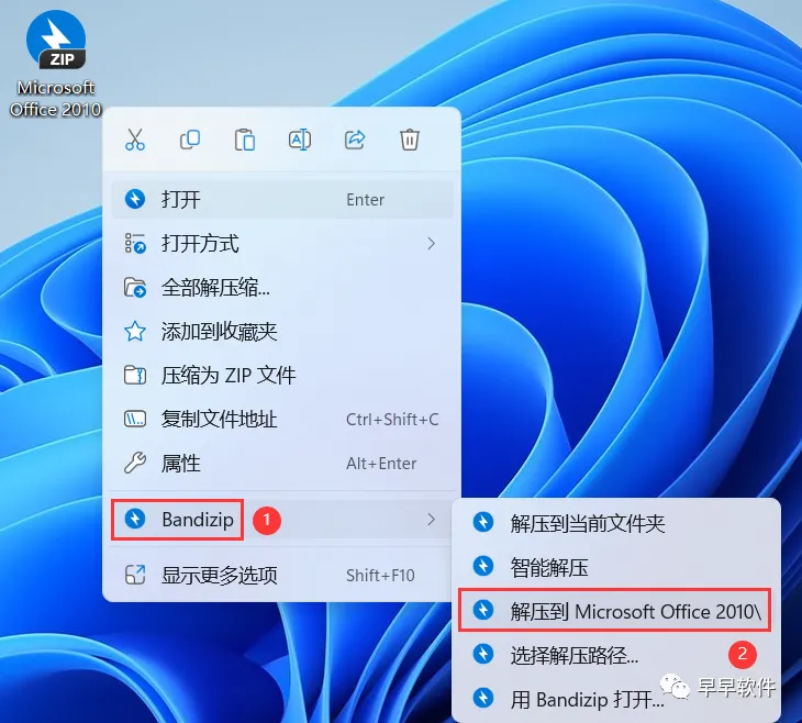 1、下载Microsoft Office 2010软件安装包到电脑上,右键选择【解压到Microsoft Office 2010\】