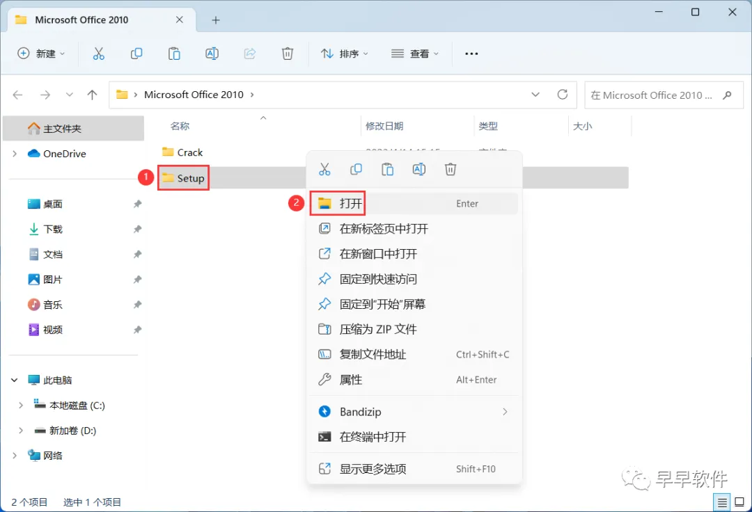 9、回到Microsoft Office 2010文件夹,找到【Crack】文件夹,右键【打开】它