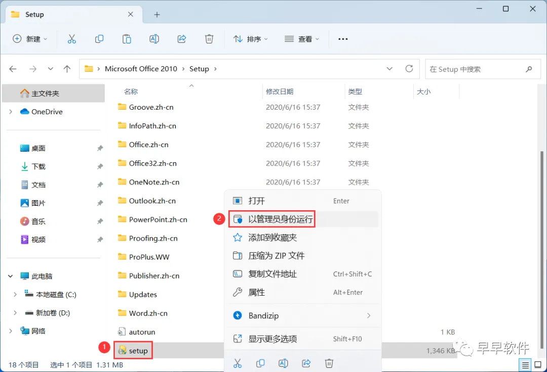 4、找到【setup】应用程序,右键选择【以管理员身份运行】它