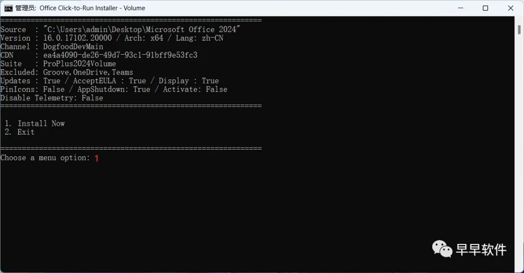 4、键盘输入【1】,程序自动启动