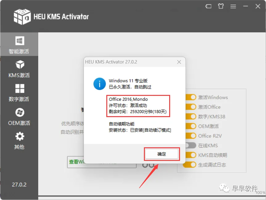 11、Office软件激活成功,点击【确定】