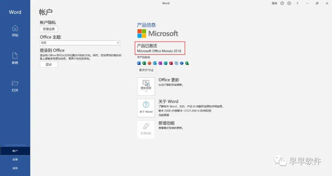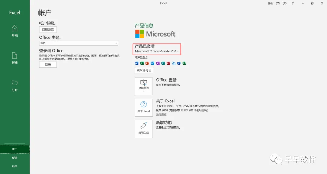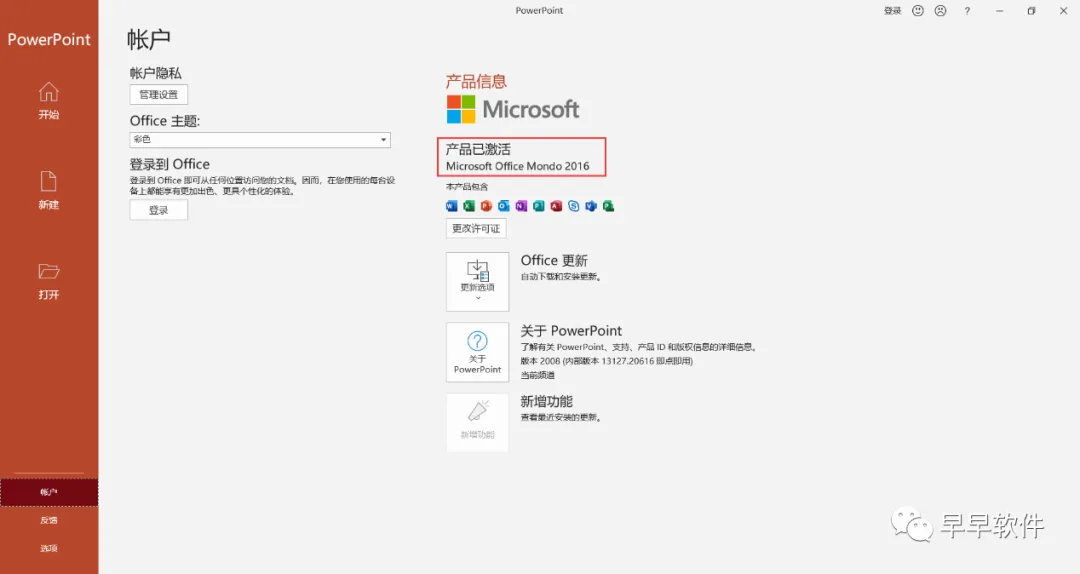 13、打开软件,查看软件激活状态,如下显示:Excel、PowerPoint和Word产品已激活