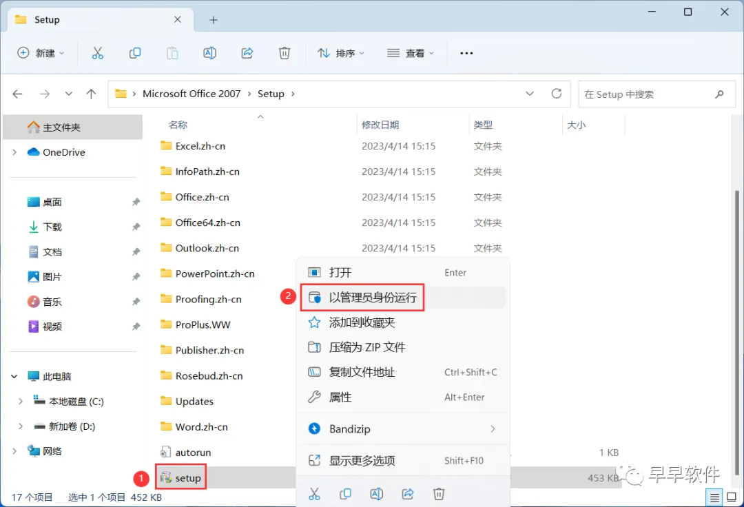 4、找到【setup】应用程序,右键选择【以管理员身份运行】它