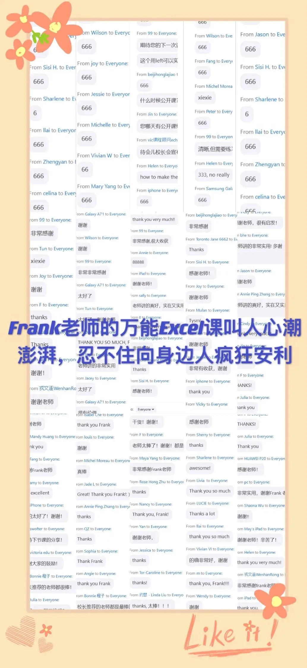 学生说“Frank老师的万能Excel课叫人心潮澎湃,忍不住向身边人疯狂安利、一推再推!”