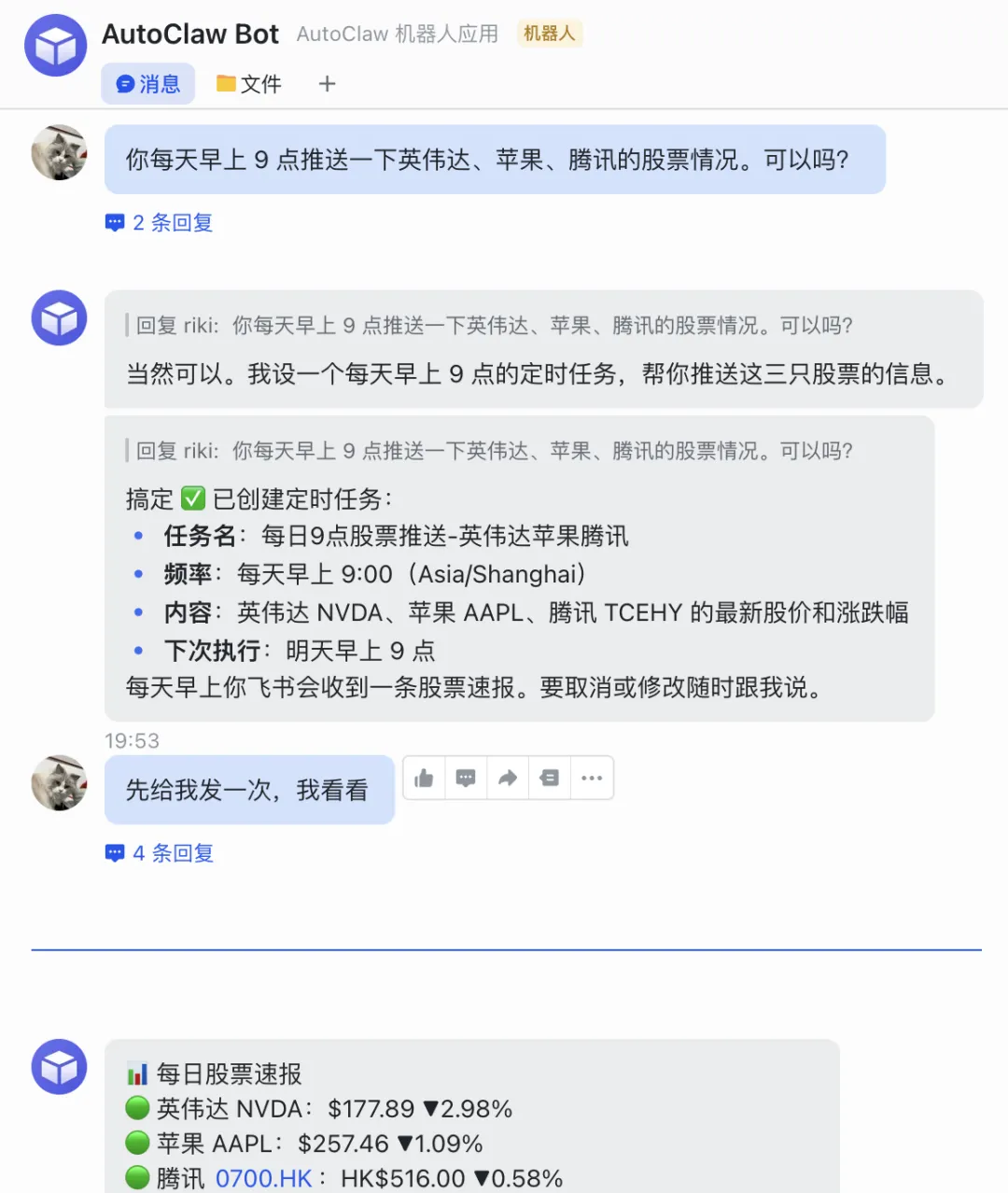 支持定时提醒、消息推送,可监控股票、资讯动态,配置简单,说清需求就行。