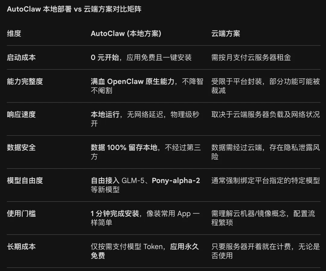 AutoClaw 直接安装在本地电脑,不用租云服务器、不用配复杂环境。