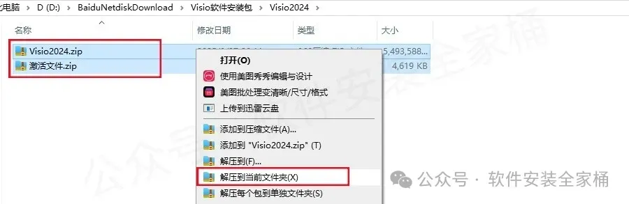 1.打开下载的软件安装包,然后鼠标右击压缩包,选择【解压到当前文件夹】。