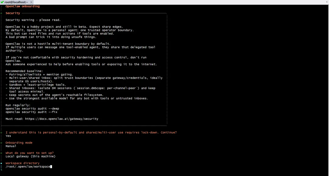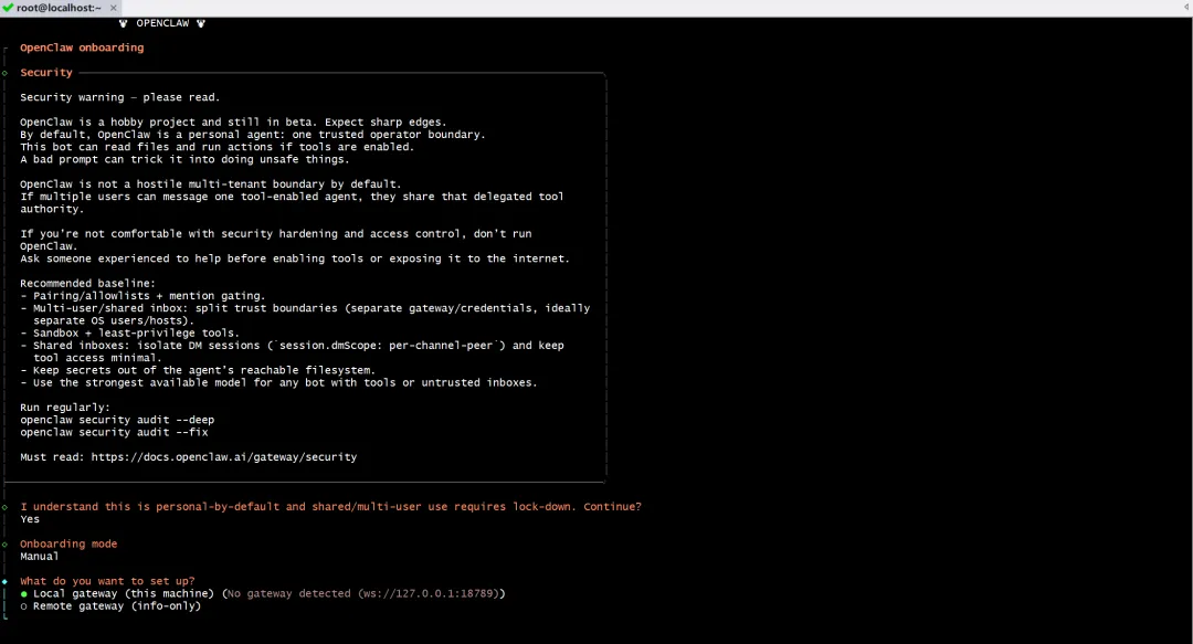openclaw init3️⃣ 安全警告阅读与确认