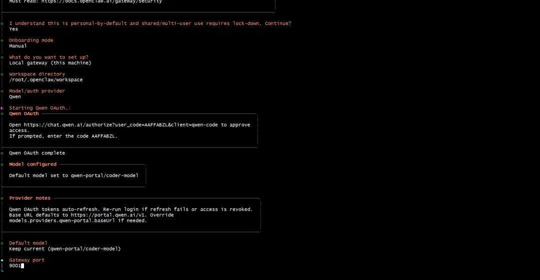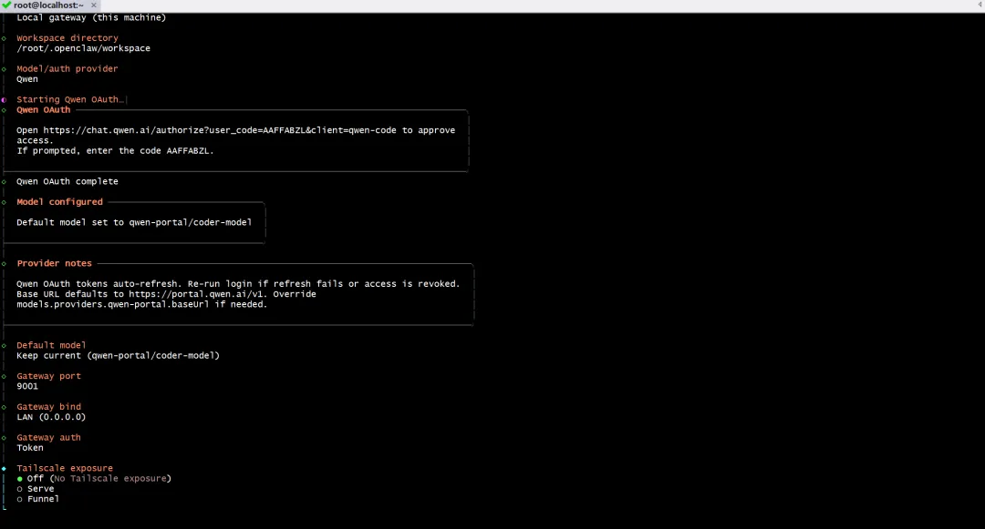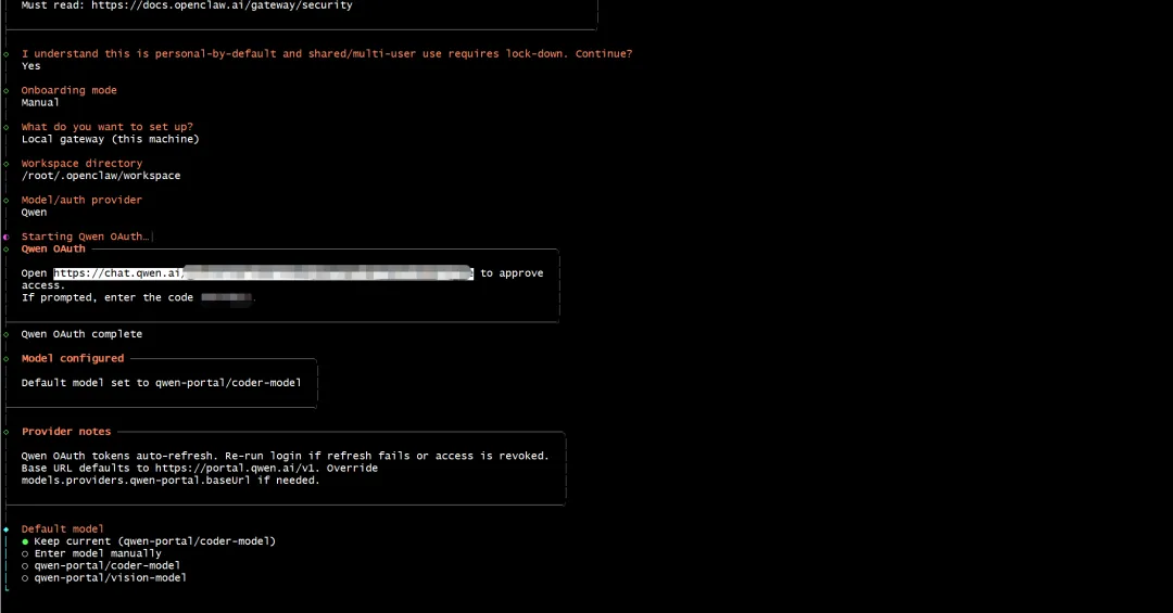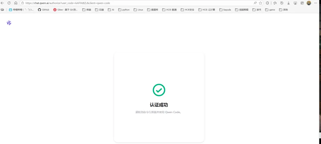https://chat.qwen.ai/authorize?user_code=AAFFABZL&client=qwen-code输入显示的授权码 AAFFABZL完成 OAuth 认证认证成功后,默认模型设置为: