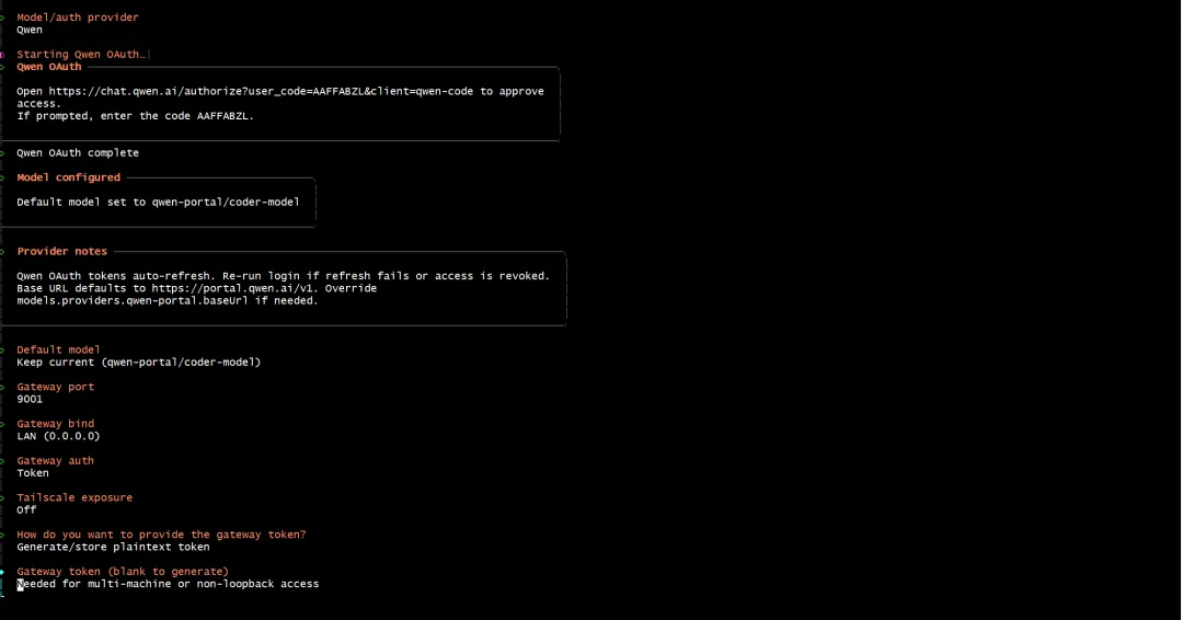 选择:Qwen(通义千问),使用 OAuth 认证。