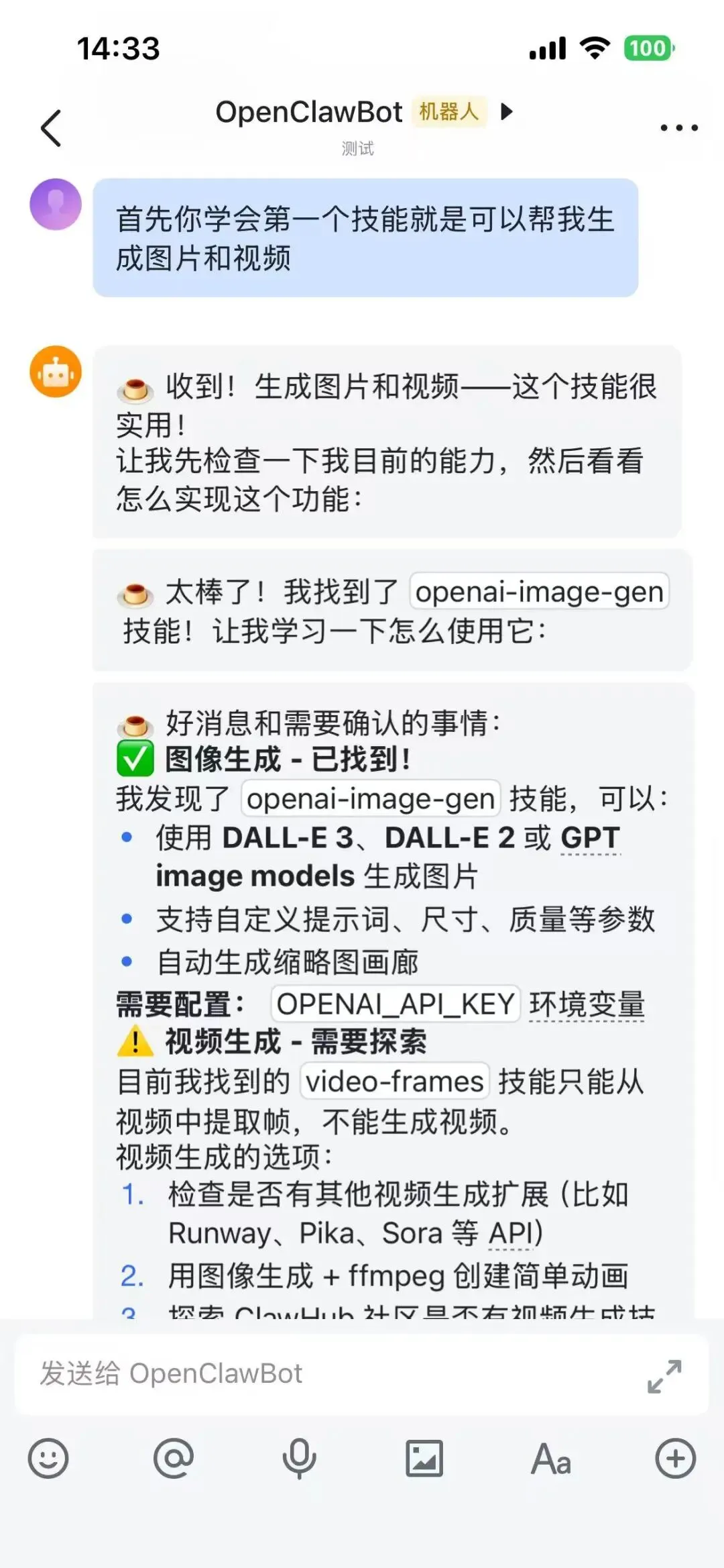 你可以通过飞书私聊或群聊与你的 OpenCLaw 交互。