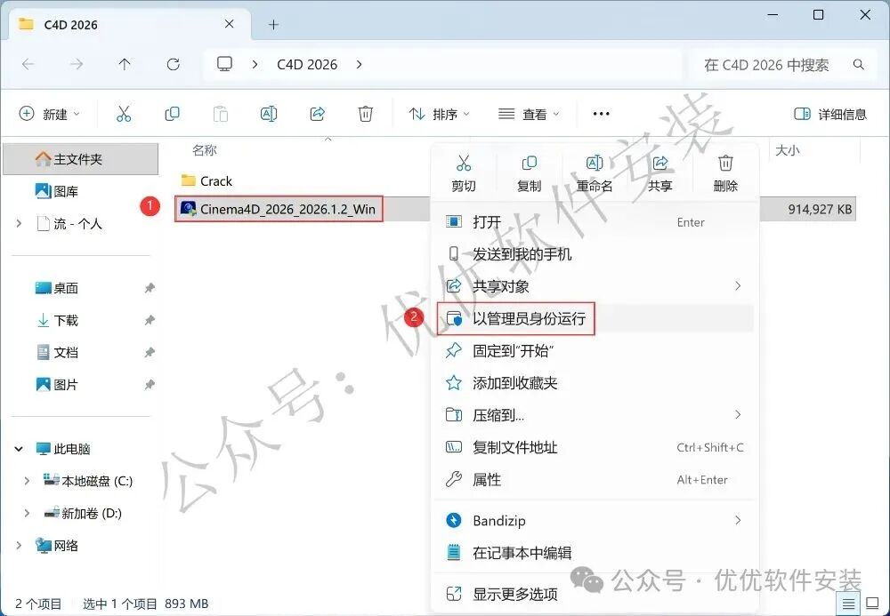 1、下载C4D 2026软件安装包到电脑上,右键选择【解压到C4D 2026\】