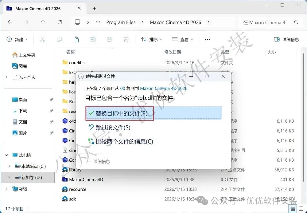14、打开路径:D:\Program Files\ Maxon Cinema 4D 2026,再右键文件夹的空白处,点击【粘贴按钮】