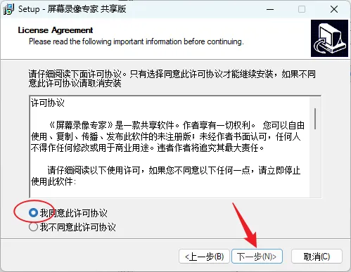 11.选择【我同意此许可协议】,然后点击【下一步】。