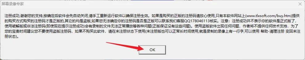 23.注册成功,点击【ok】。