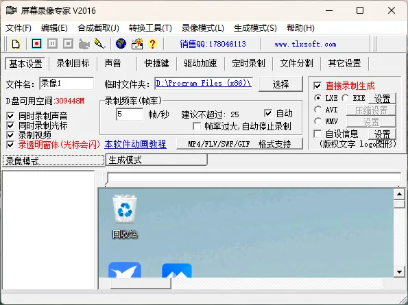 后期编辑:提供独立的后期编辑模块,支持对EXE、LXE、AVI、WMV、MP4等格式文件进行截取、合成、格式转换(如转为MP4、FLV、GIF)、后期配音、音量调整、背景音乐合成及去噪音等操作。