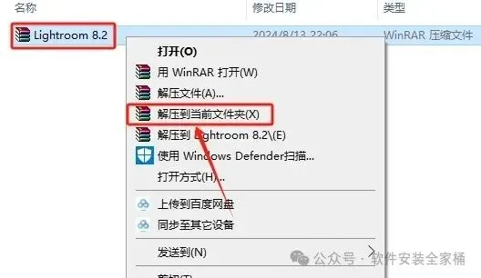 1.右击软件压缩包选择【解压到当前文件夹】。
