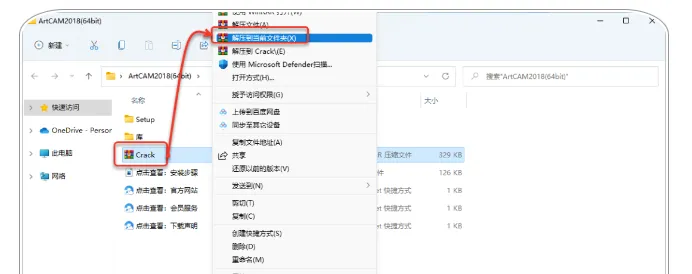 17.打开安装包解压后的【ArtCAM 2018】文件夹,鼠标右击【Crack】选择【解压到当前文件夹】。