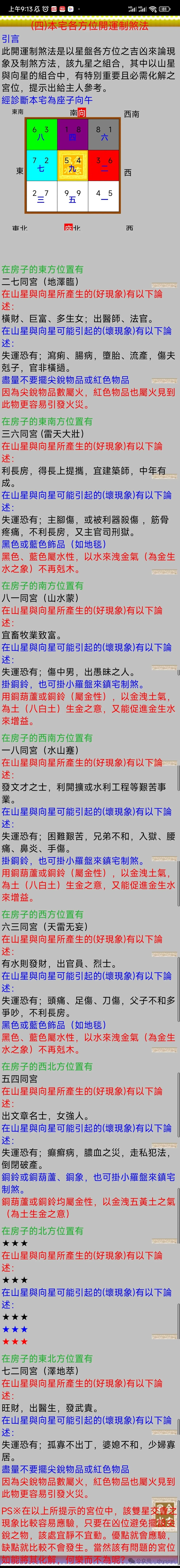 (三)本宅各方位九星組合尅應