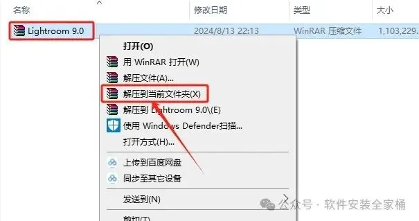 1.右击软件压缩包选择【解压到当前文件夹】。