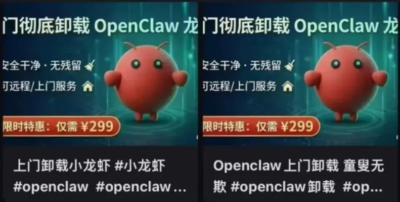 忍无可忍之下,很多人决定彻底卸载“龙虾”,可没想到,卸载比安装更麻烦——由于部分用户是请人远程部署,自己不懂环境清理和权限撤销,只能再次花钱请人上门卸载,而目前网上的上门卸载费用,竟然高达299元/单。
