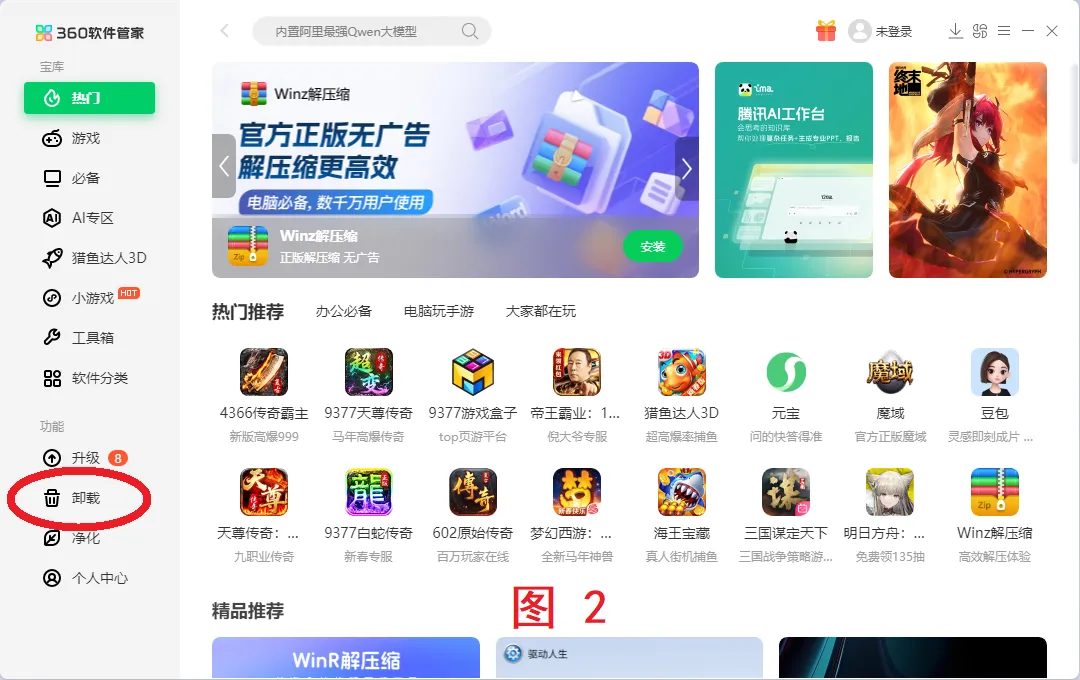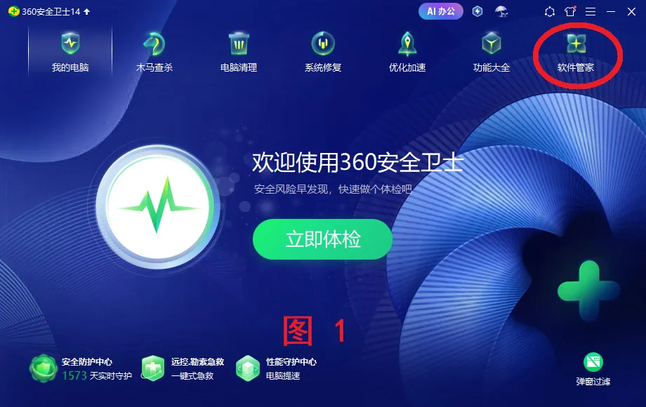 2.点击图1右上角红圈处“软件管家”出现图2。