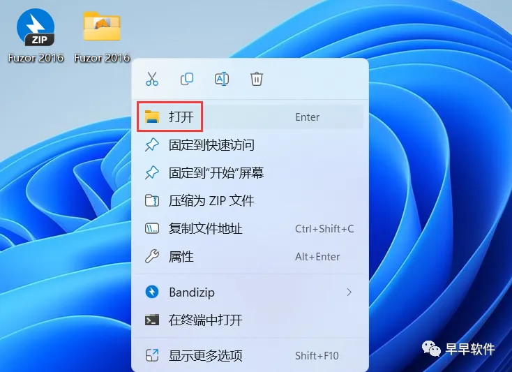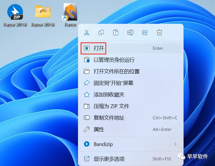 8、右键桌面上的【Fuzor软件图标】,点击【打开】